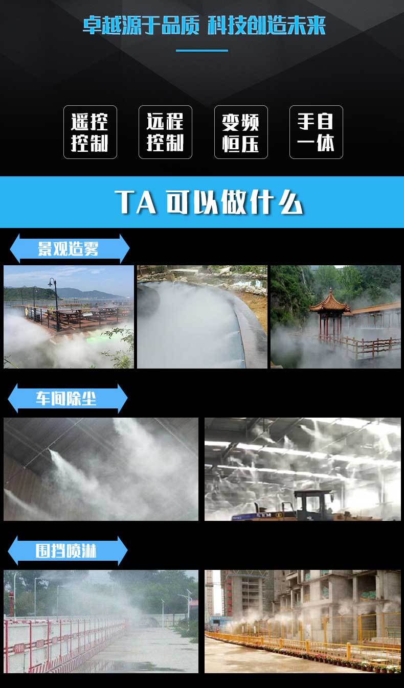 高壓微霧加濕器具有高科技含量的加濕系統,它利用柱塞泵將經過過濾器凈化處理過的水加壓至30-70kg/cm 2 左右,通過高壓厚壁管路將加壓的水輸送到“ 超微細”噴嘴霧化,并高速旋轉, 以1~15μm的超微霧粒子噴射到整個空間,超微霧粒子在空氣中吸收熱量,從液態變氣態蒸發,使空間濕度增大,空氣的溫度降低。